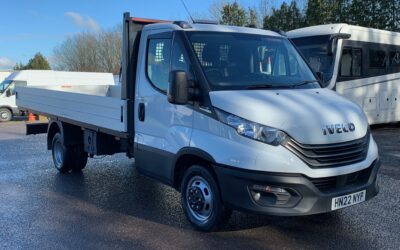 XLWB DROPSIDE – 2022, 22 plate Iveco Daily 35C14A8 4.9m Dropside in white, 2.3ltr 140bhp 8- Speed Hi- Matic auto, 4100 wheelbase 3500kgs GVW 7000kgs GTW Business Pack including manual air conditioning, cruise control, fog lights, heated and electrically adjustable mirrors, digital DAB radio, spare wheel and underbody spare wheel carrier, underbody n/s and o/s […]